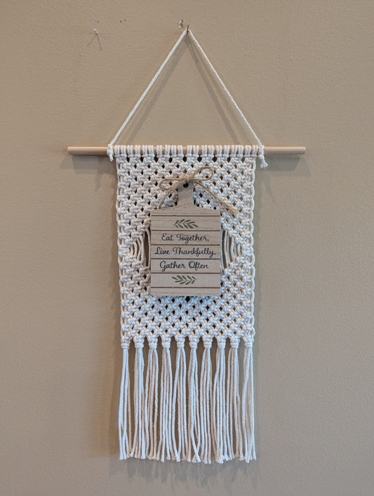 Macrame fall wall hangings with signs
